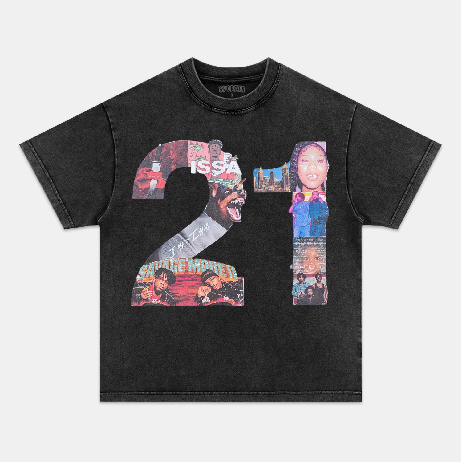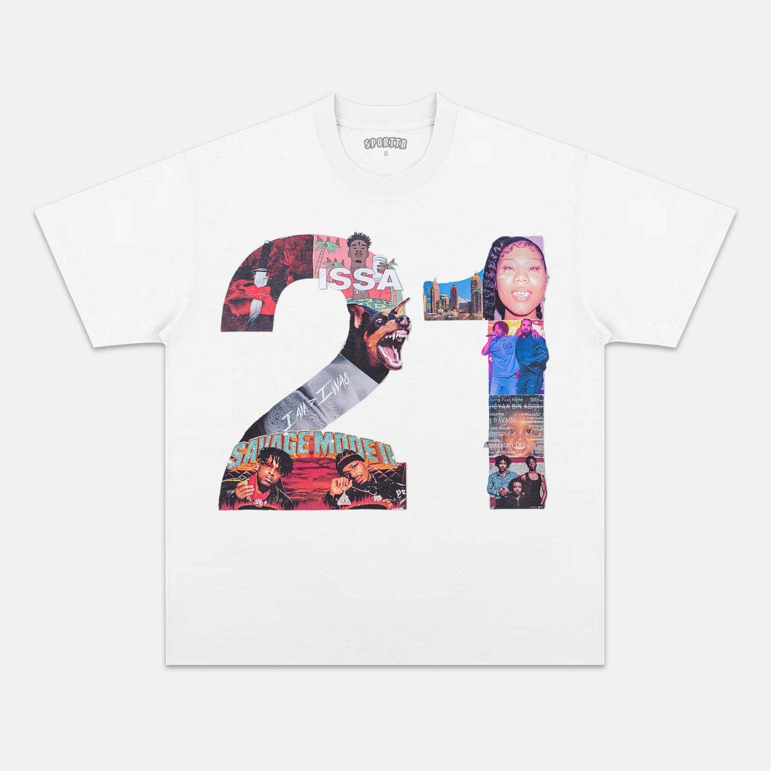 21 SAVAGE & HEAD COLLAGE TEE