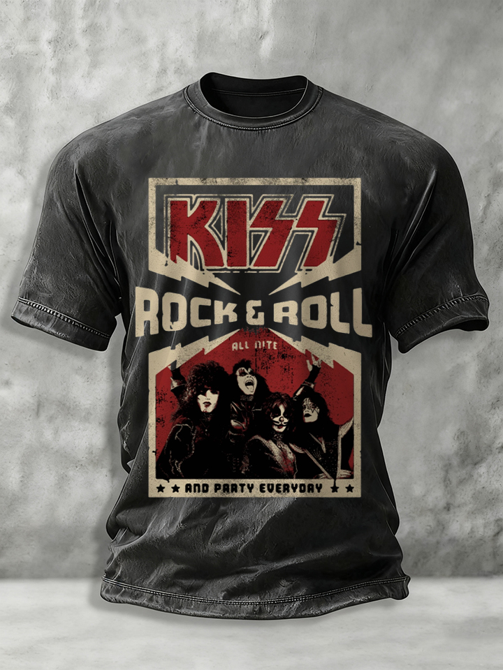 Men‘s Ace Frehley Print Short Sleeve Washed Shirt